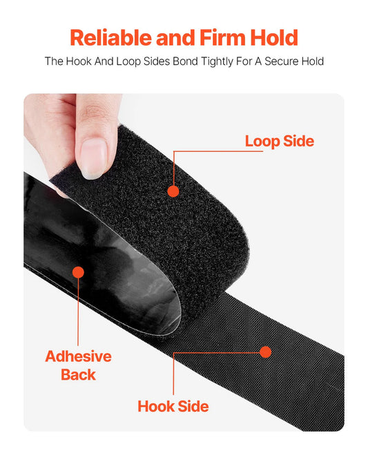 16 Ft X 1.5 in Hook and Loop Tape Nylon Self Adhesive Strips Roll Black