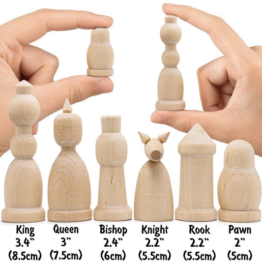Unfinished Wood Chess Pieces Only Set of 32 Pcs Paint Your Own Chess Set DIY Kit