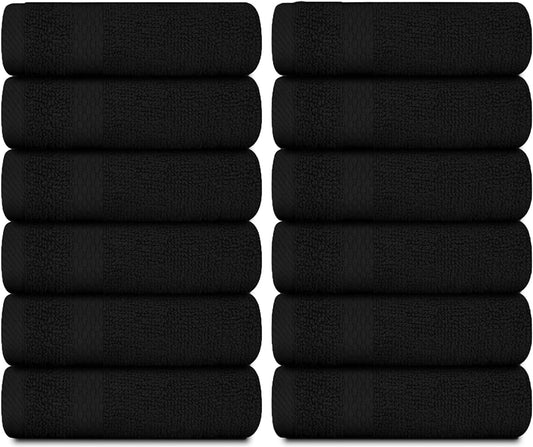 Luxury Cotton Washcloths Set 12 Pack - Hotel Quality Cleansing Face Towels Set, Black Small Bathr...